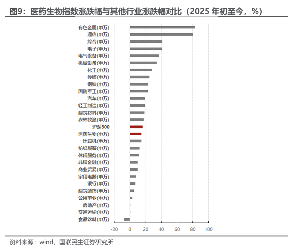 在所有行业中,当周(12.15-12.19)医药涨跌幅排在第18位。2025年初至今,医药涨跌幅排在第15位。
