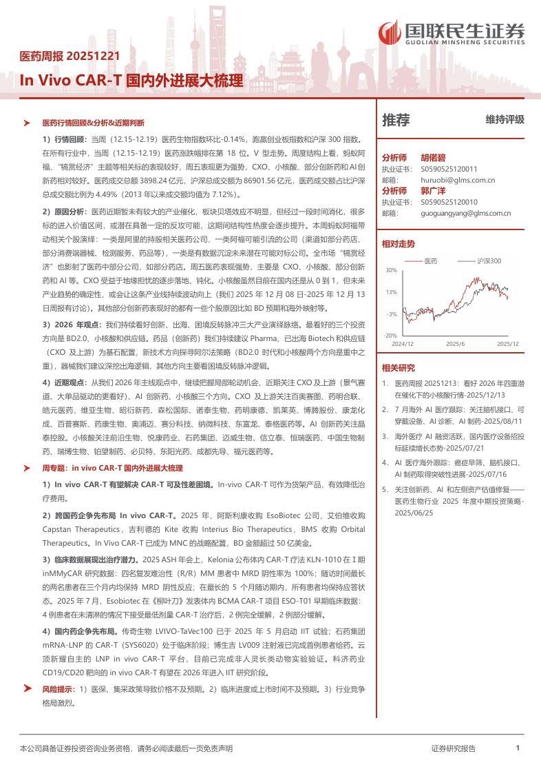证券研究报告:《医药周报20251221:In Vivo CAR-T国内外进展大梳理》
