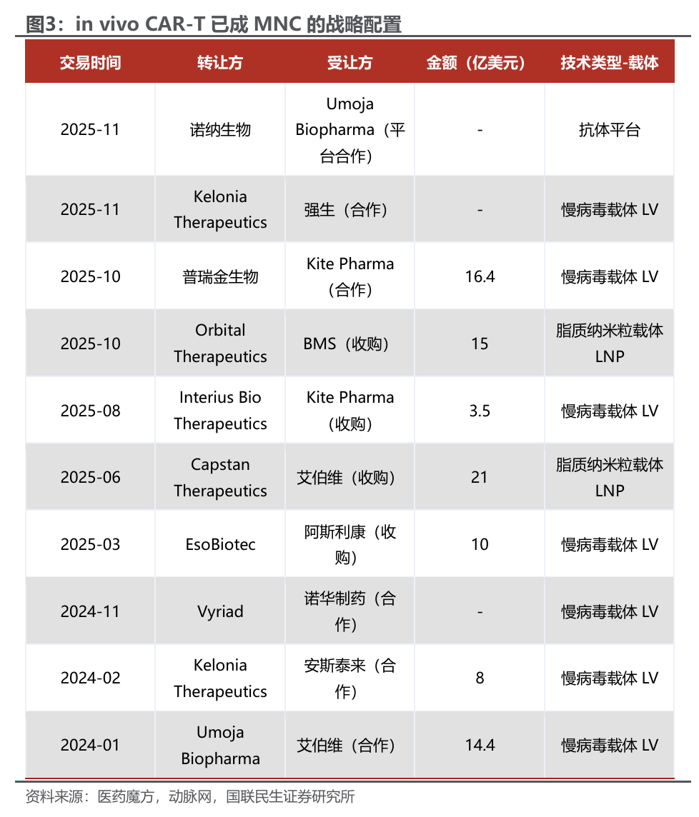 1.2 In Vivo CAR-T已成为MNC企业的战略配置