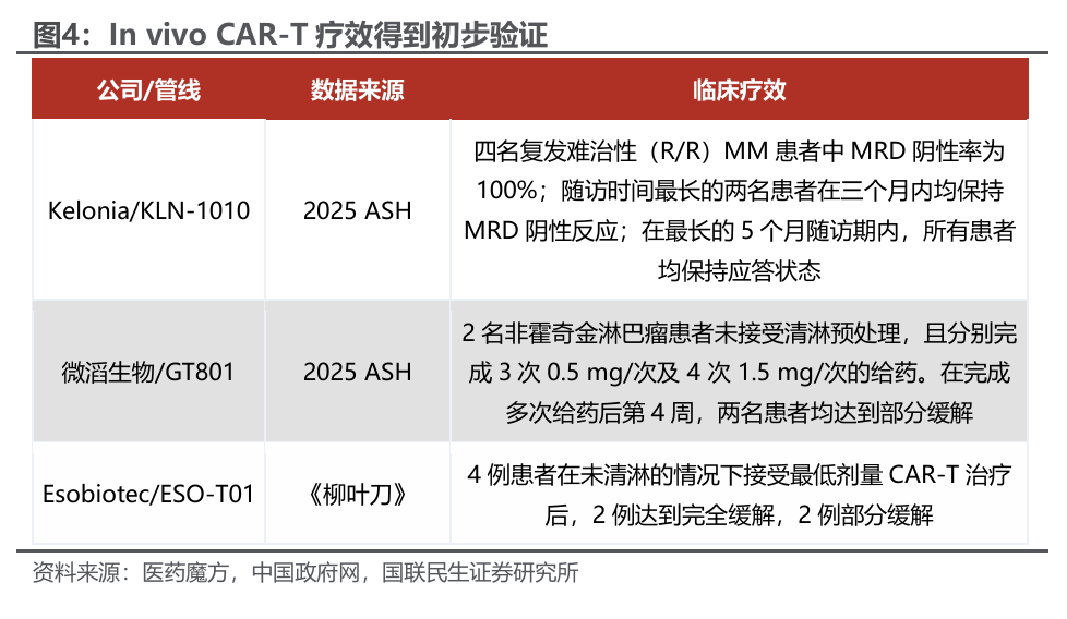 1.3 In vivo CAR-T临床数据展现出治疗潜力