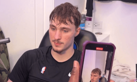 虎扑12月24日讯 NBA常规赛,独行侠131-130战胜掘金。赛后,库珀-弗拉格接受了采访,谈到他的双胞胎兄弟艾斯-弗拉格在场边观战。